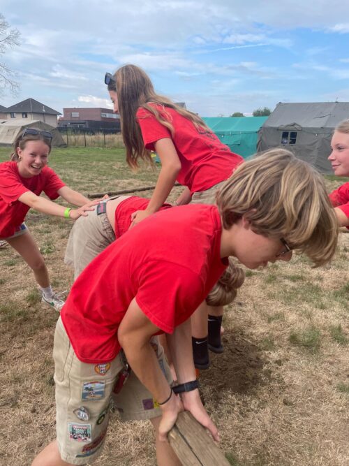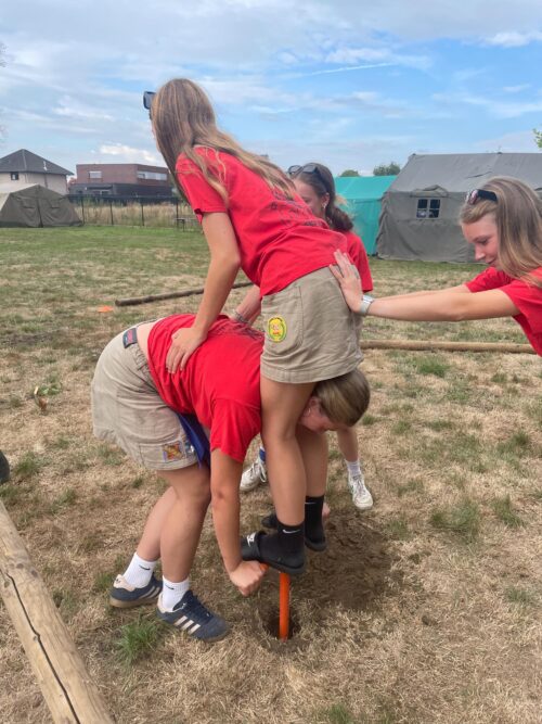 Vandaag was alweer een drukke dag voor de keti’s. We begonnen de dag waar we gisteren geëindigd waren, bij onze fameuze vlaggenmast! Nadat alle palen in de grond stonden, sjorden we vol enthousiasme verder in de lucht. Met als resultaat een mooie en kaarsrechte vlaggenmast! Namiddag was het leidingswissel waarbij we opzoek gingen naar de meest middelmatige keti. We sloten de avond af met het groepsspel.