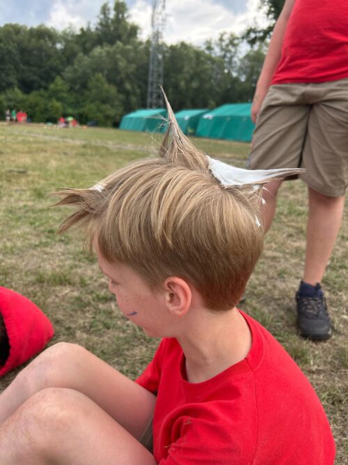 Vandaag begonnen de kadees de dag met een bijzonder spel: ze kregen allemaal een handicap, zoals geblinddoekt worden of op één been hinkelen, en moesten zo allerlei opdrachten uitvoeren. Zo probeerden ze bijvoorbeeld te dansen zonder iets te zien wat zorgde voor heel wat gelach en teamwork! In de namiddag stond er iets speciaals op het programma: de leidingswissel. De aspis namen voor één keer de leiding over en begeleidden de kadees met veel enthousiasme en nieuwe spelletjes. Als afsluiter van deze toffe dag trokken de kadees er ’s avonds op uit voor een spannend nachtspel. In het donker verdiende ze in kleine groepjes mysterieuze tijdstenen doormiddel van spelletjes. Moe en voldaan kropen ze daarna hun bed in na lekkere maaltijden zoals hamburger met krieltjes en pasta carbonara.