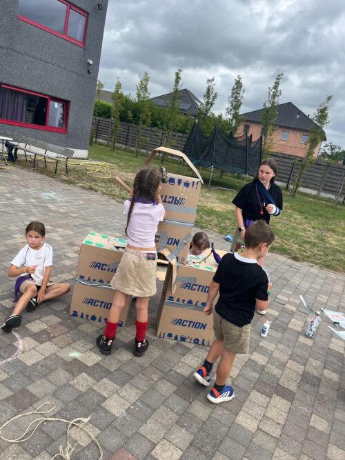 De kadees begonnen hun ochtend op een avontuurlijke manier met een spannend spel in het thema van de middeleeuwen. Ze waanden zich ridders en jonkvrouwen terwijl ze samen een indrukwekkend kasteel bouwden, geheimzinnige heksensoep bereidden en zich onderdompelden in allerlei andere magische en middeleeuwse activiteiten. Het was een fantasierijke start van de dag vol plezier, samenwerking en creativiteit. In de namiddag namen de kadees even de tijd om brieven te schrijven naar het thuisfront. Daarna konden ze hun energie kwijt tijdens een uitdagend spel waarin ze het moesten opnemen tegen de klok.